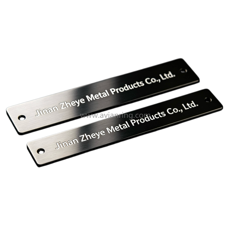 This black titanium stainless steel nameplate is made from durable stainless steel with a premium black titanium finish and clear engraved marking. It offers excellent resistance to corrosion, wear, and fading, making it suitable for equipment branding, industrial identification, machinery labels, furniture tags, and custom logo plates. Custom sizes, thicknesses, shapes, hole positions, and engraved content are available to meet different application needs.