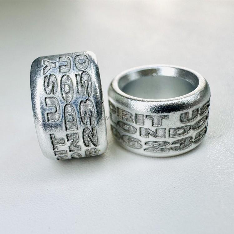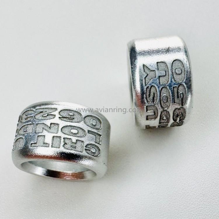Description: High quality Custom Deep Engraved Silver Aluminum Bird Ring