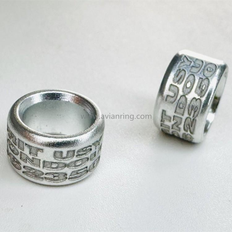 Description: High quality Custom Deep Engraved Silver Aluminum Bird Ring